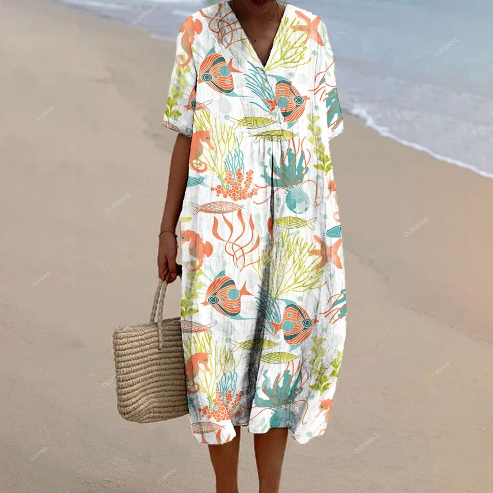 Coral Fish Printed Beach Dress