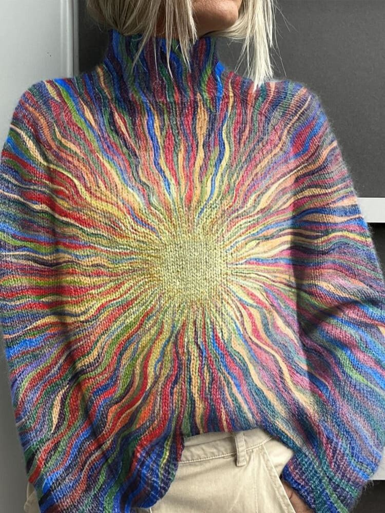 Colourful Sun Stripes Vintage Print Knit Turtleneck Pullover Sweater