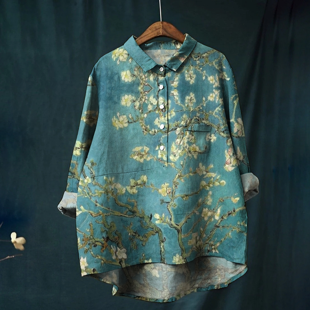 Women's Vintage Flower Print Casual Cotton And Linen Shirt