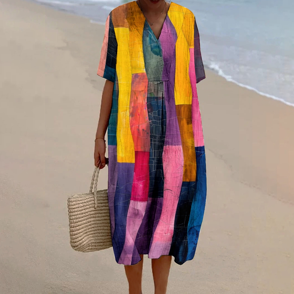 Women's Retro Plaid Abstract Art Print Casual 3/4 Sleeve Shirt