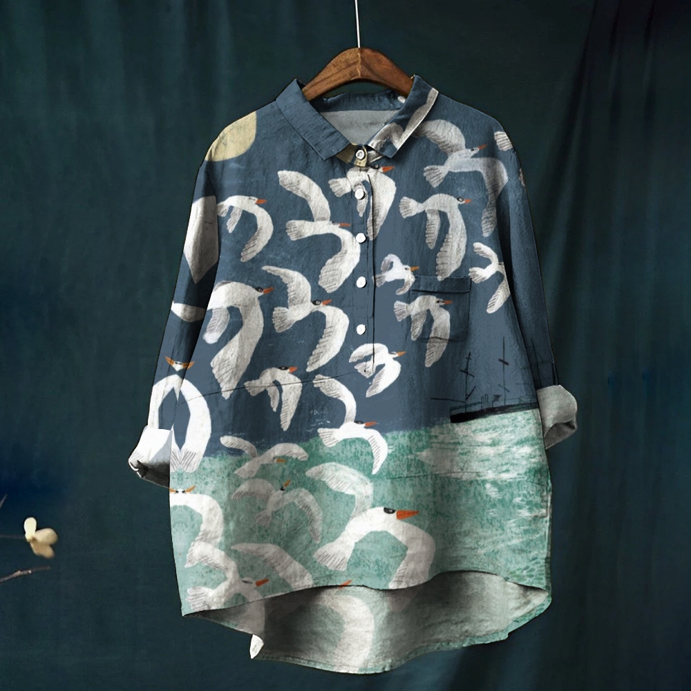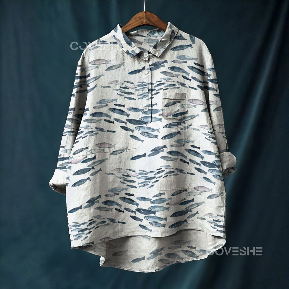 Women's Sardines Printed Casual Long Sleeve Shirt