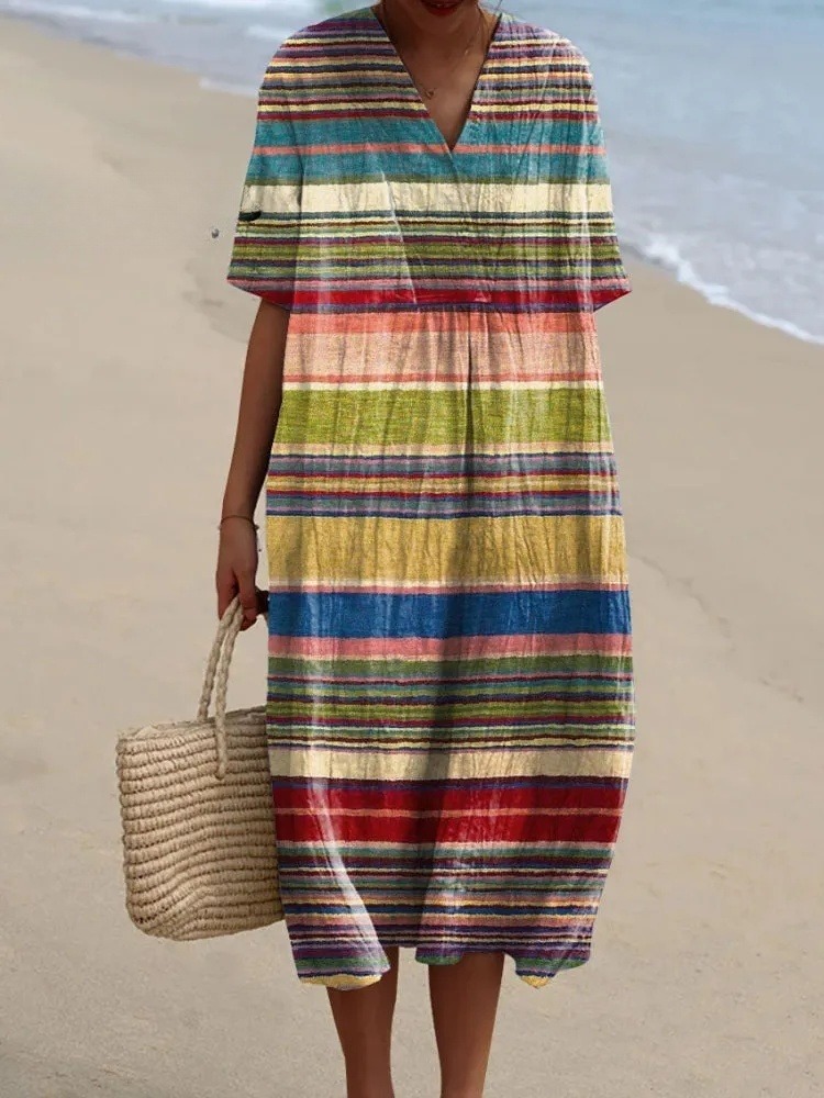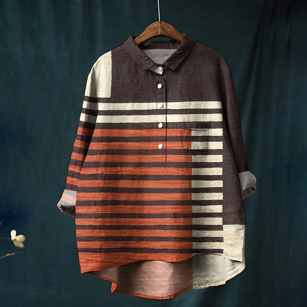 Women's Vintage Colorblock Stripe Printed Casual Shirt