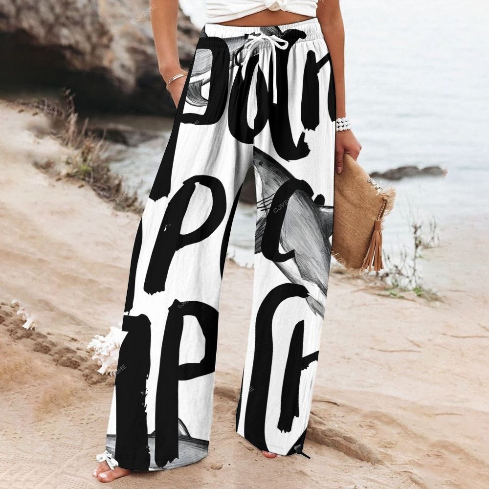 Women's Shark Letter Doodle Wide Leg Casual Printed Pants
