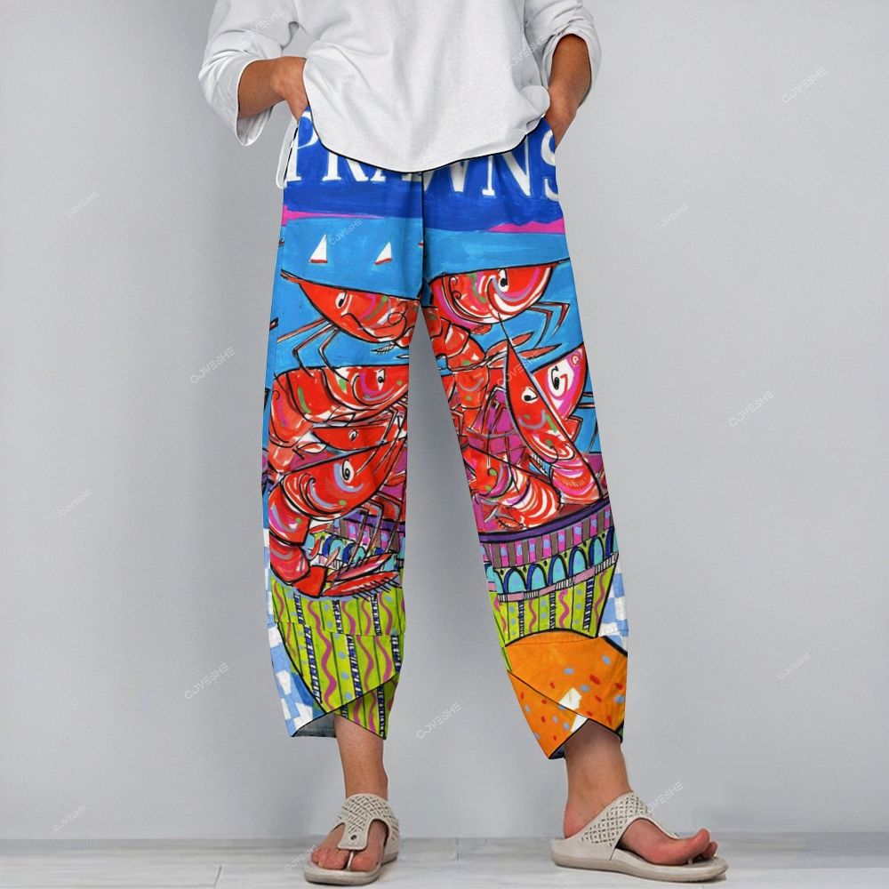 Women's Wide Leg Casual Painted Fish Printed Pants