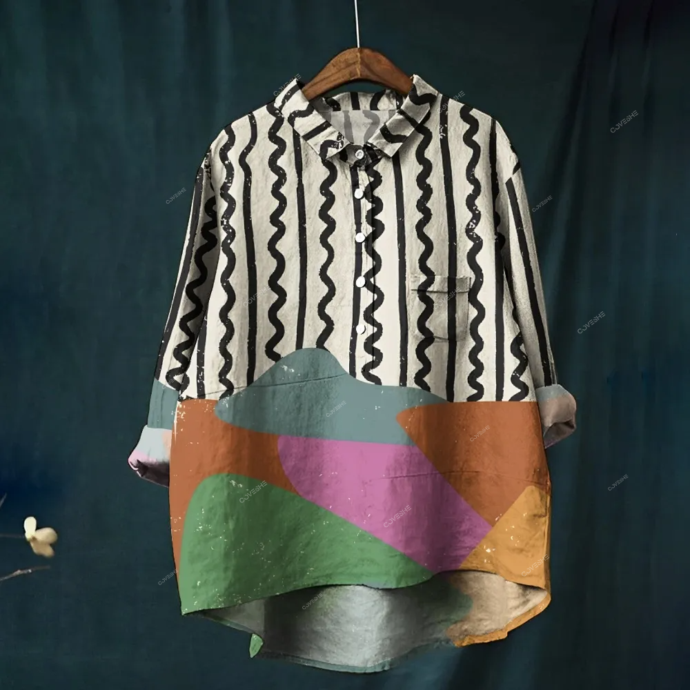 Women's Minimalist Art Geometric Lines Print Casual Shirt