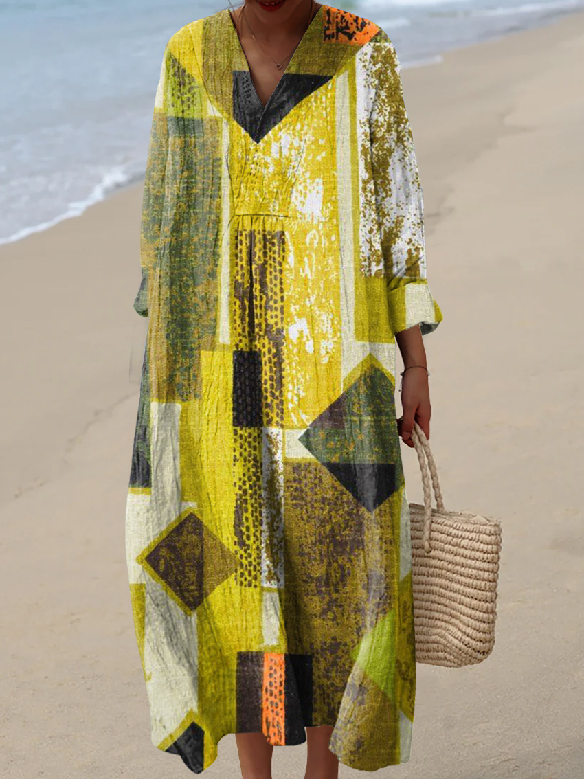 Women's Vintage Geometric Line Art Print Cotton Dress