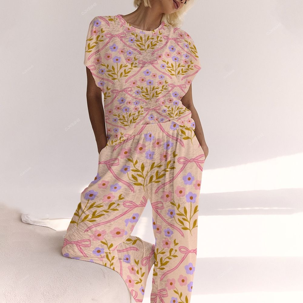 Ladies Flowers Bow Printed Lounge Suit