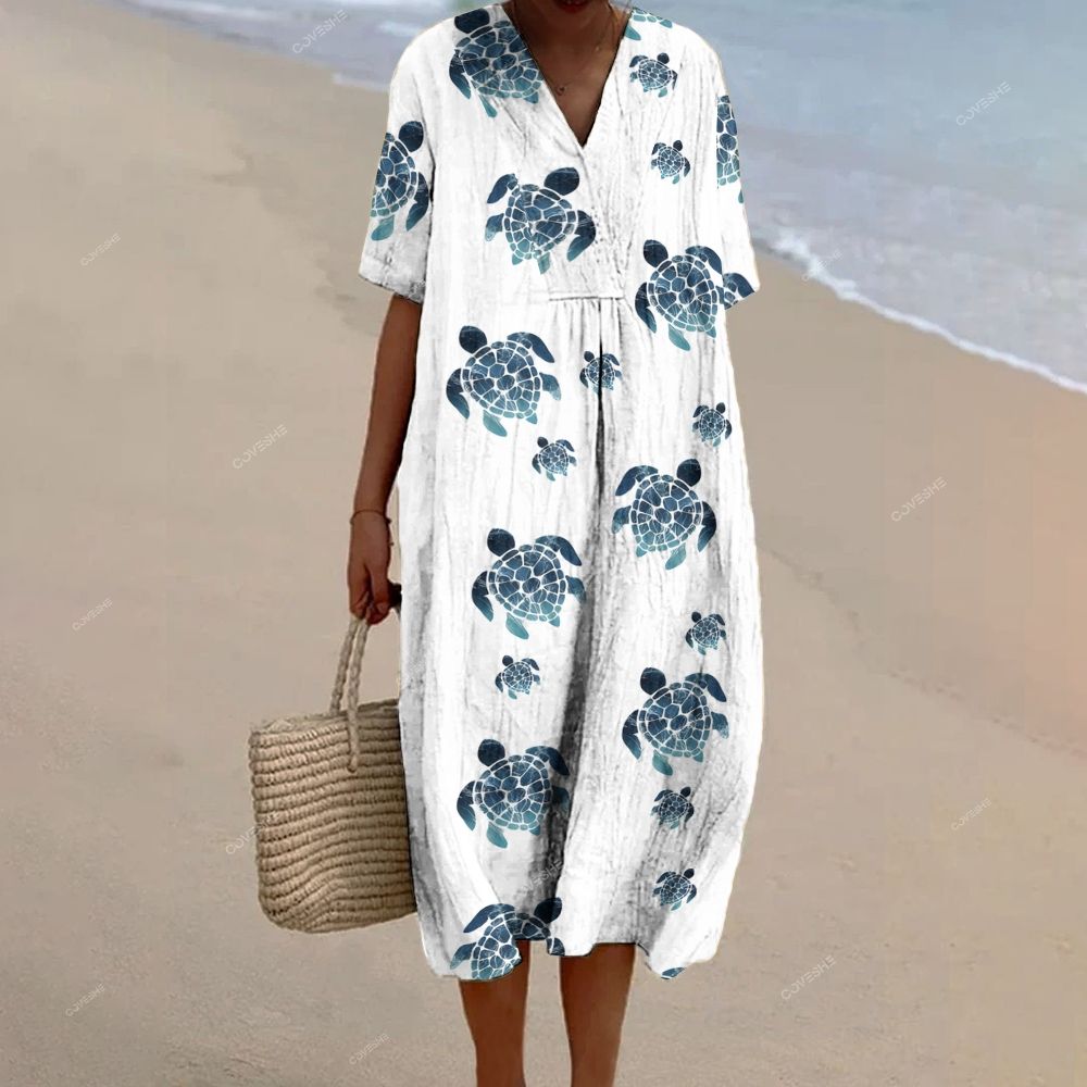 Women's Colorful Cartoon Chicken Printed Flowy Dress