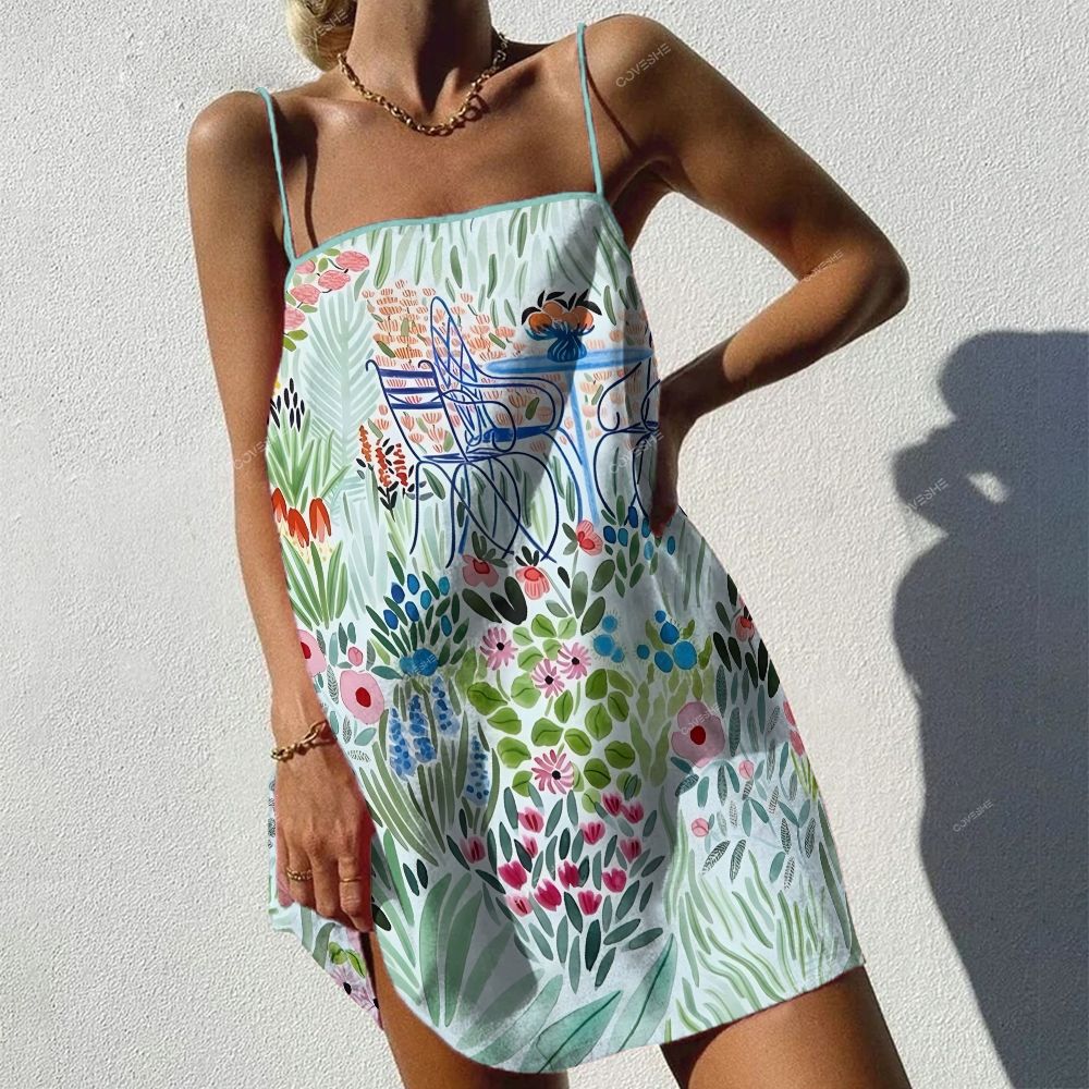 Women's Vintage Floral Art Print Sleeveless Cotton Pocket Wrap Dress