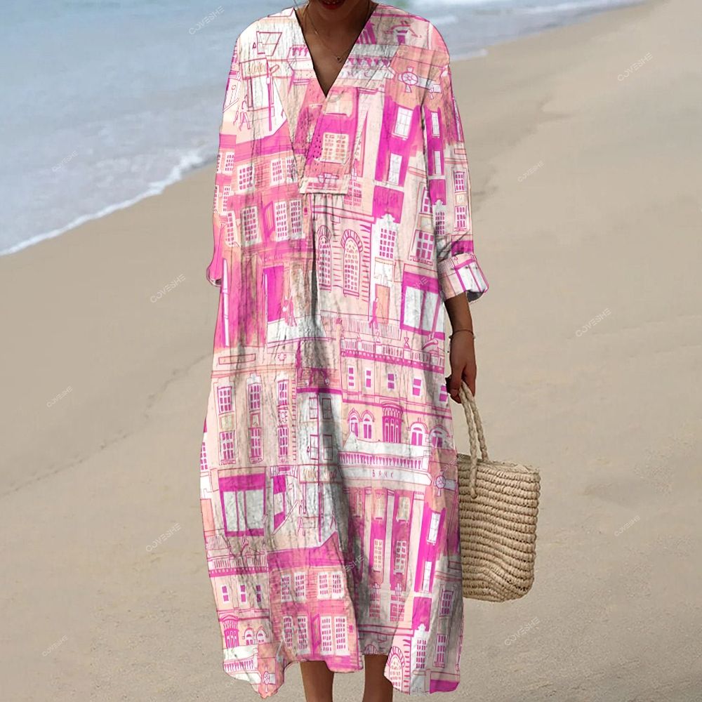 Women's Vintage Lovely Floral Art Print Pocket Cotton Dress