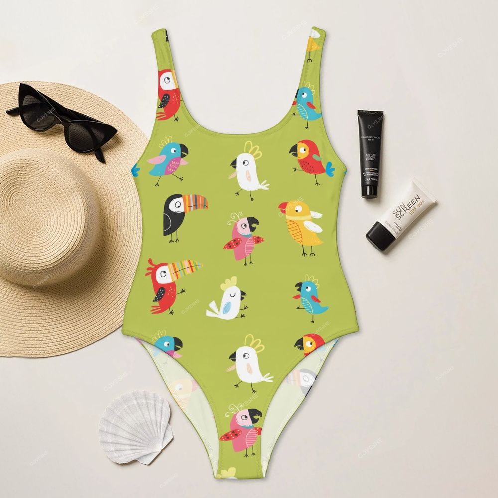 Cartoon Colorful Bird Printed One Piece Swimsuit