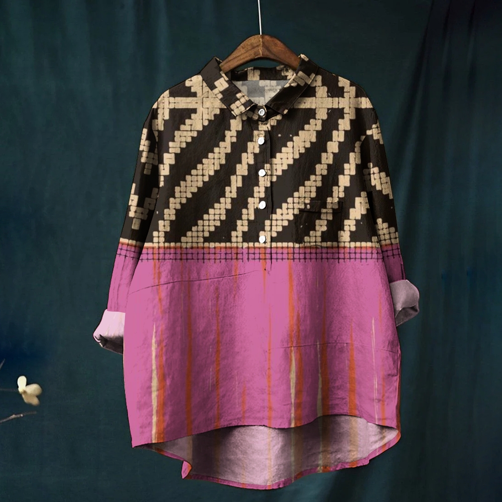 Women's Irregular Geometric Splicing Printed Casual Shirt
