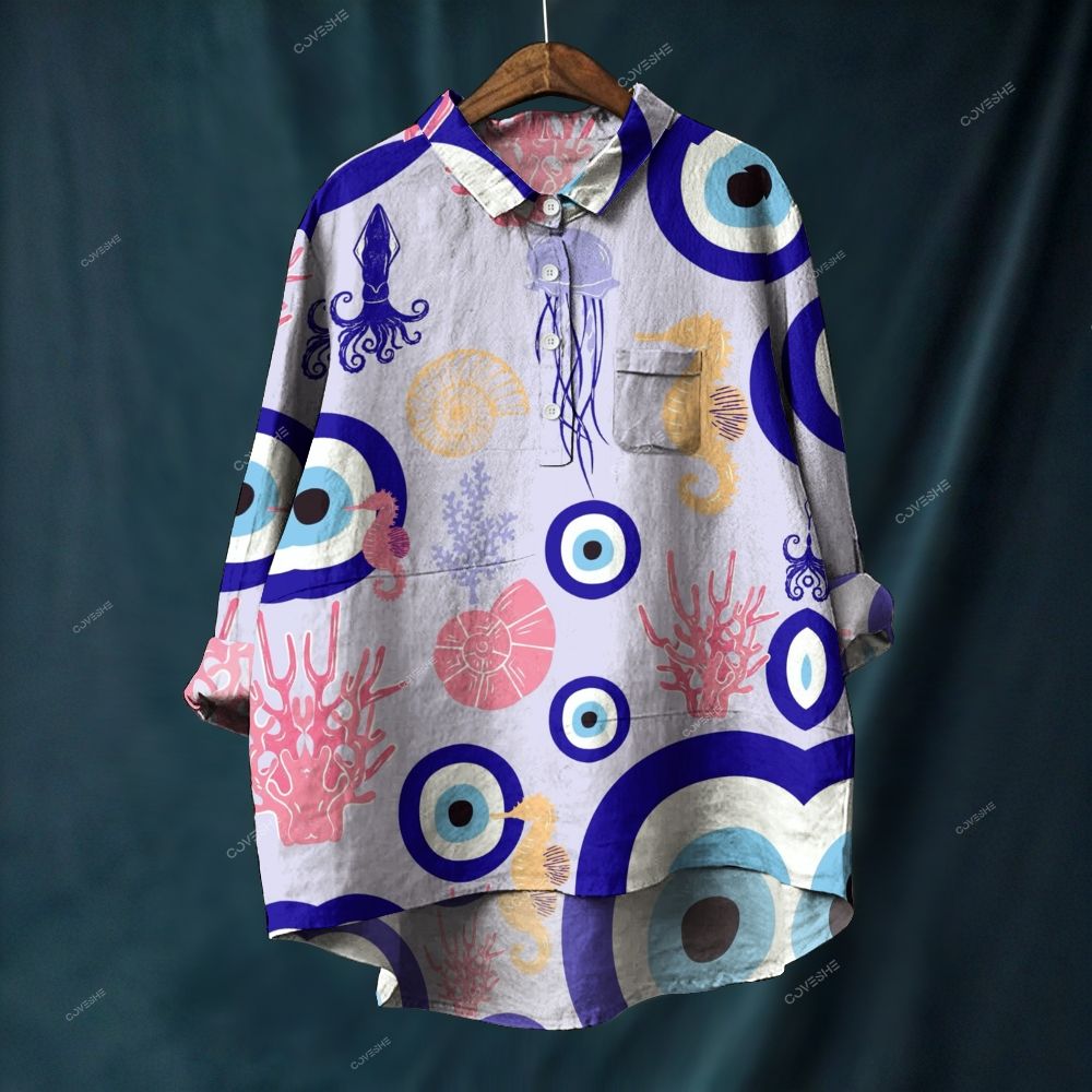Women's Geometry Sea Life Printed Casual Long Sleeve Shirt
