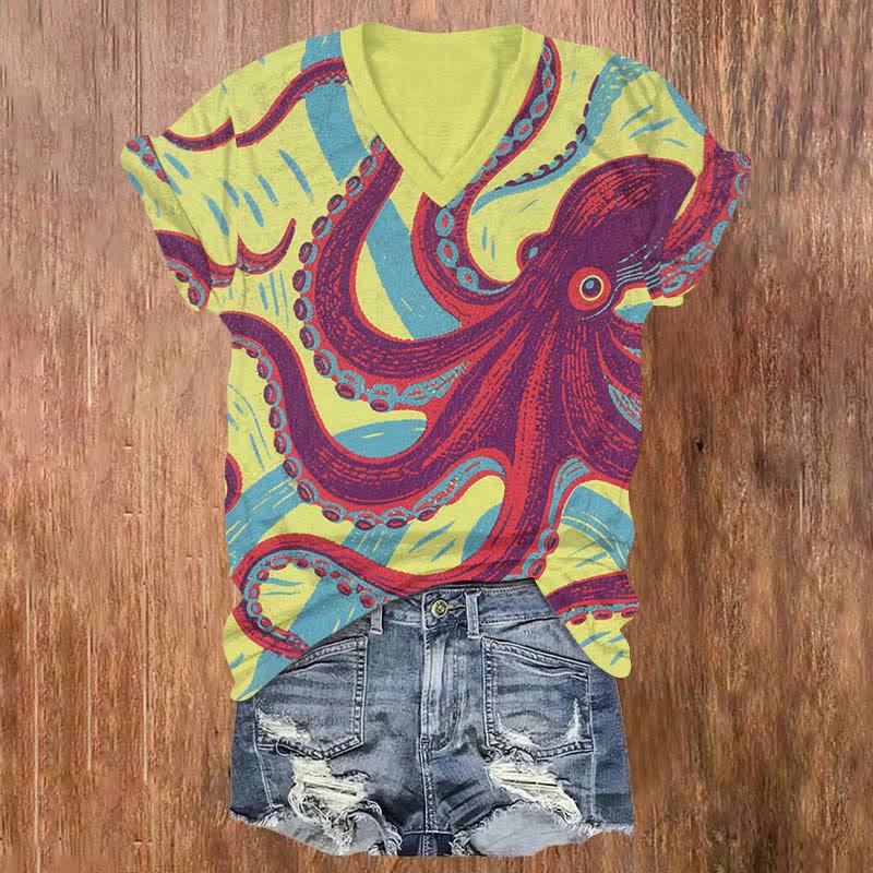 Vintage Watercolor Octopus Art Print V-neck T-shirt