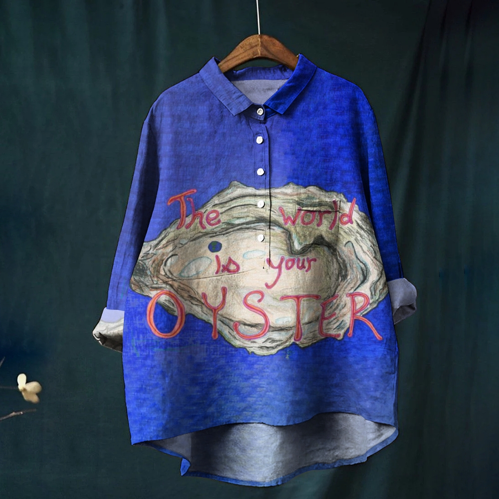 Women's Oil Painting Flower Printed Casual Long Sleeve Shirt