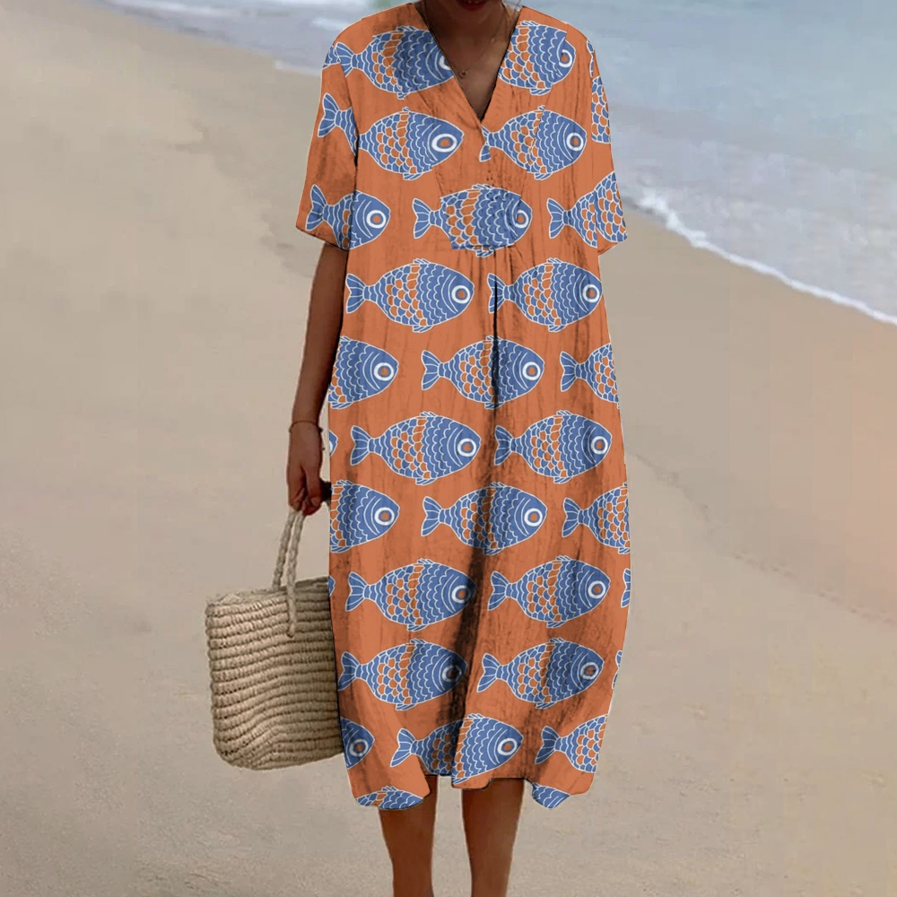 Women's Vintage Lovely Fish Art Print Flowy Dress