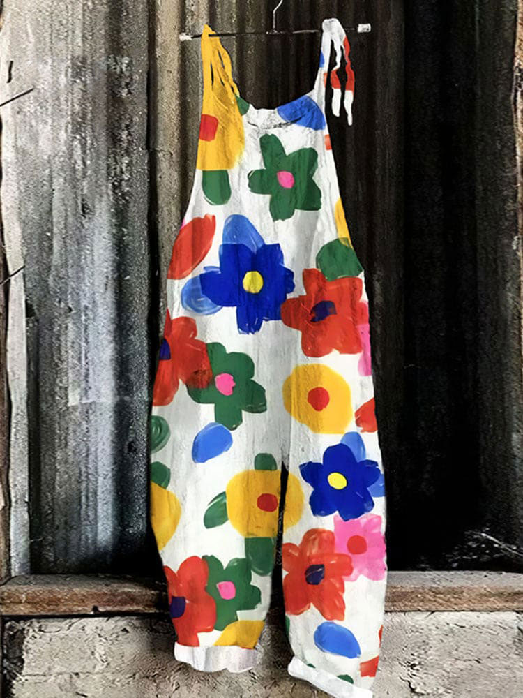 Vintage Flowers Colorful Graffiti Graphic Casual Loose Jumpsuit