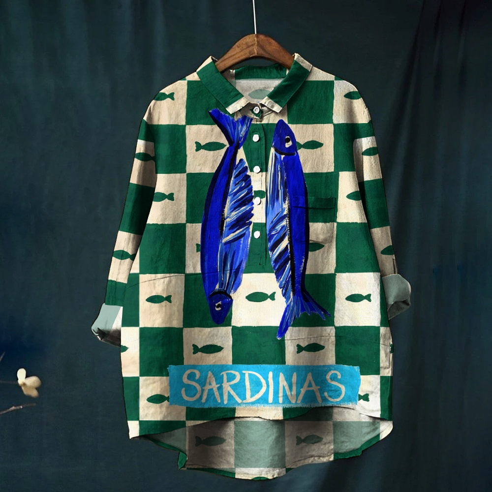 Women's Vintage Sardines Print Casual Shirt