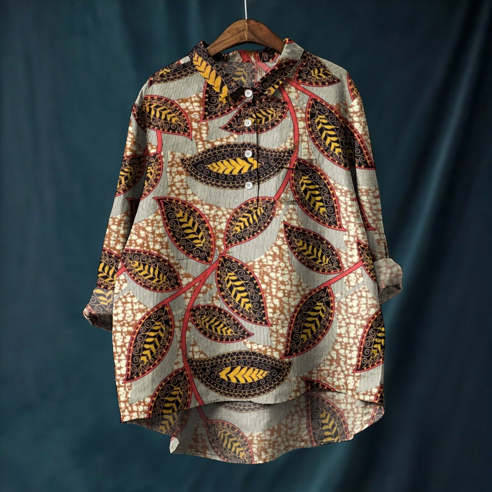 Women's Vintage Leaf Printed Casual Long Sleeve Shirt