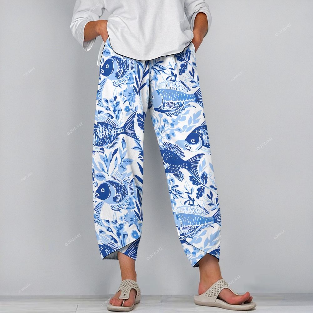 Women's Casual Retro Fish Printed Pants