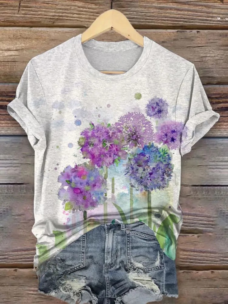 Women's Vintage Line Art Print Casual Crew Neck Shirt