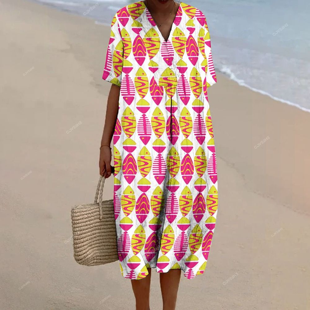 Women's Colorful Cartoon Fish Printed Flowy Dress