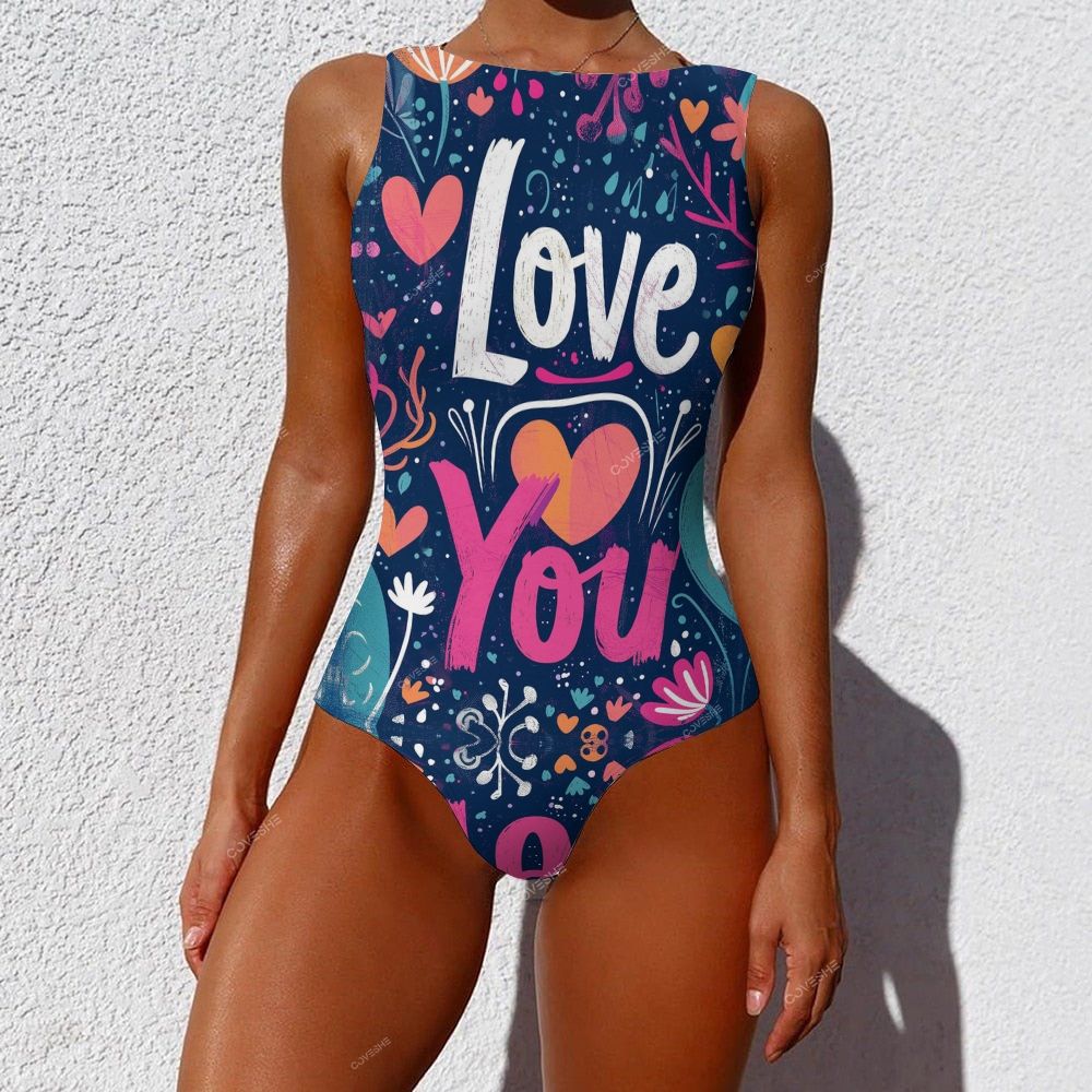 Love Art Printed One-Piece Swimsuit