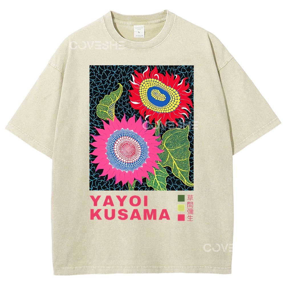 Unisex Polka Dot Flower Printed Washed Tee