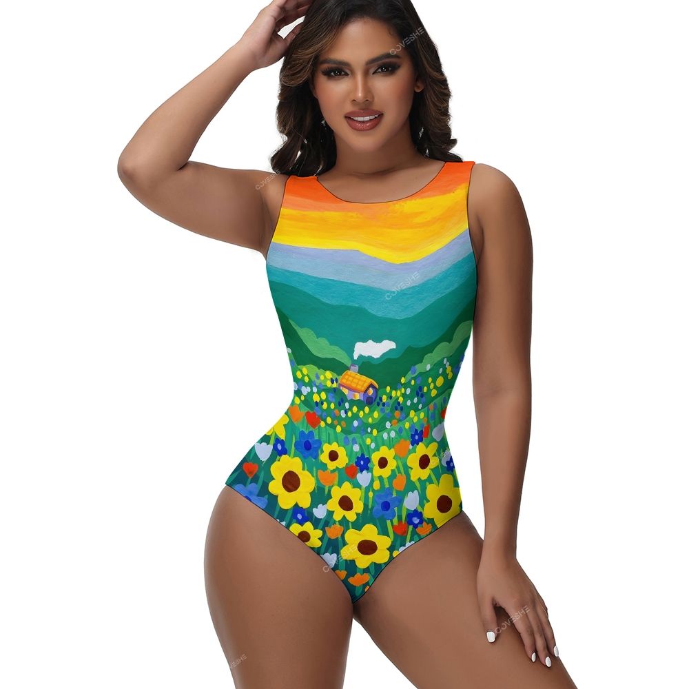 Colorful Flower One-Piece Swimsuit