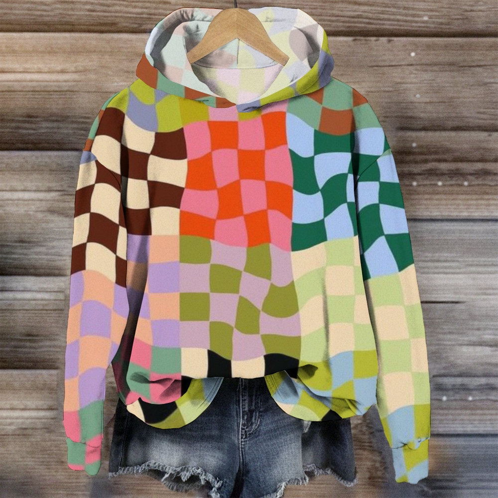 Colorful Plaid Art Print Casual Hoodie