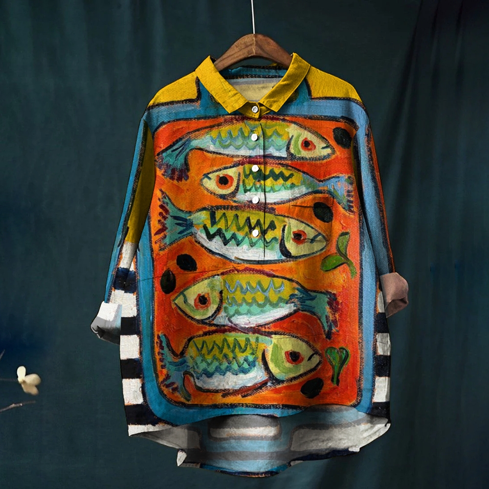 Women's Vintage Fish Printed Casual Long Sleeve Shirt