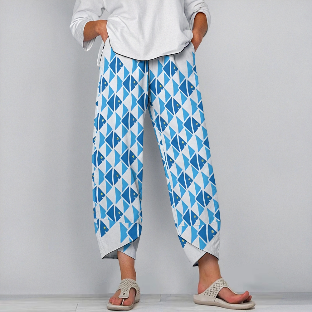 Women's Wide Leg Casual Colorful Geometric Fish Printed Pants