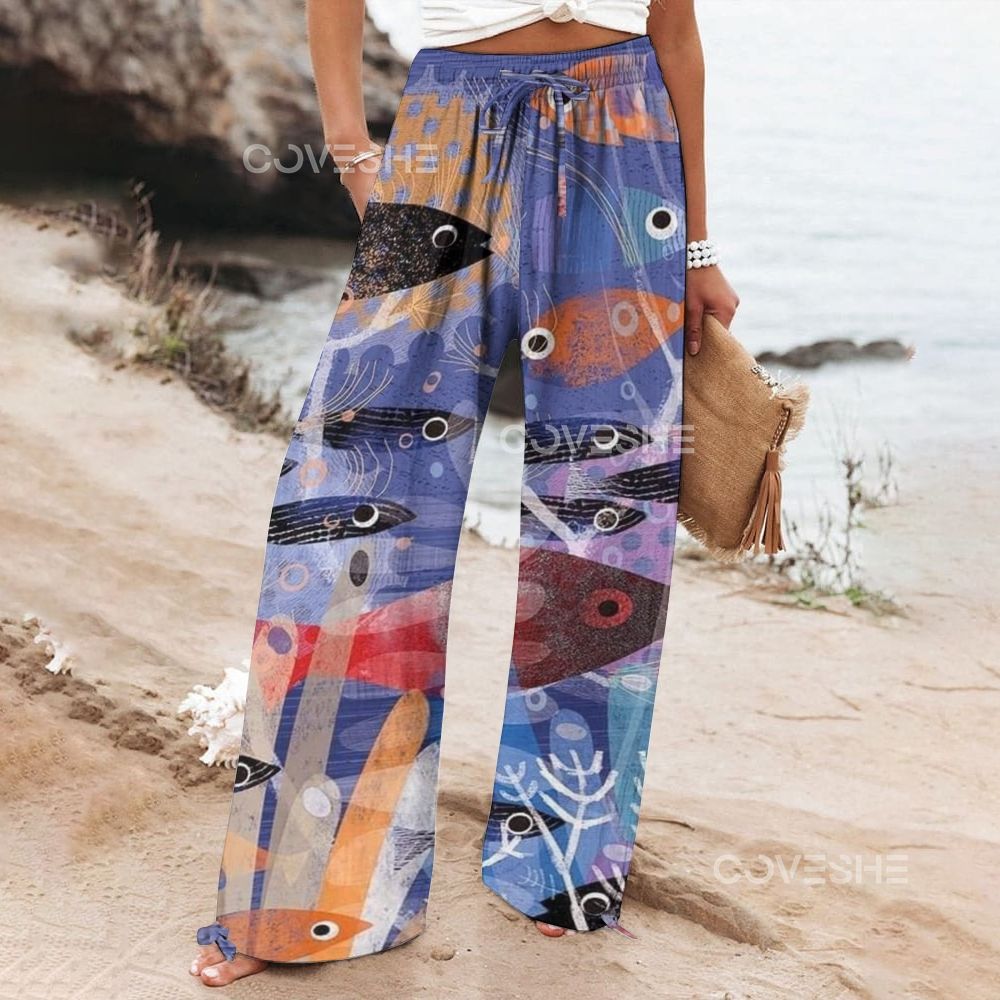 Women's Wide Leg Casual Sea Bottom Fish Printed Pants