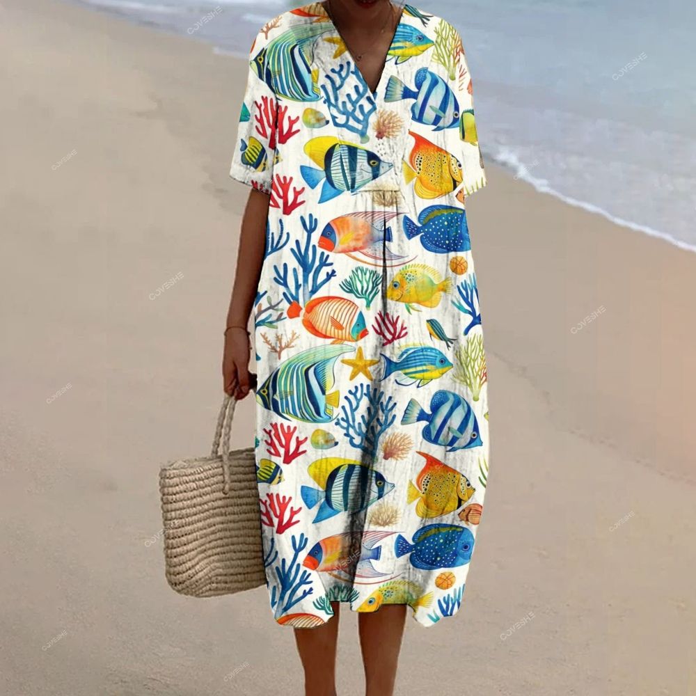 Women's Sea Turtle Art Print Flowy Casual Dress
