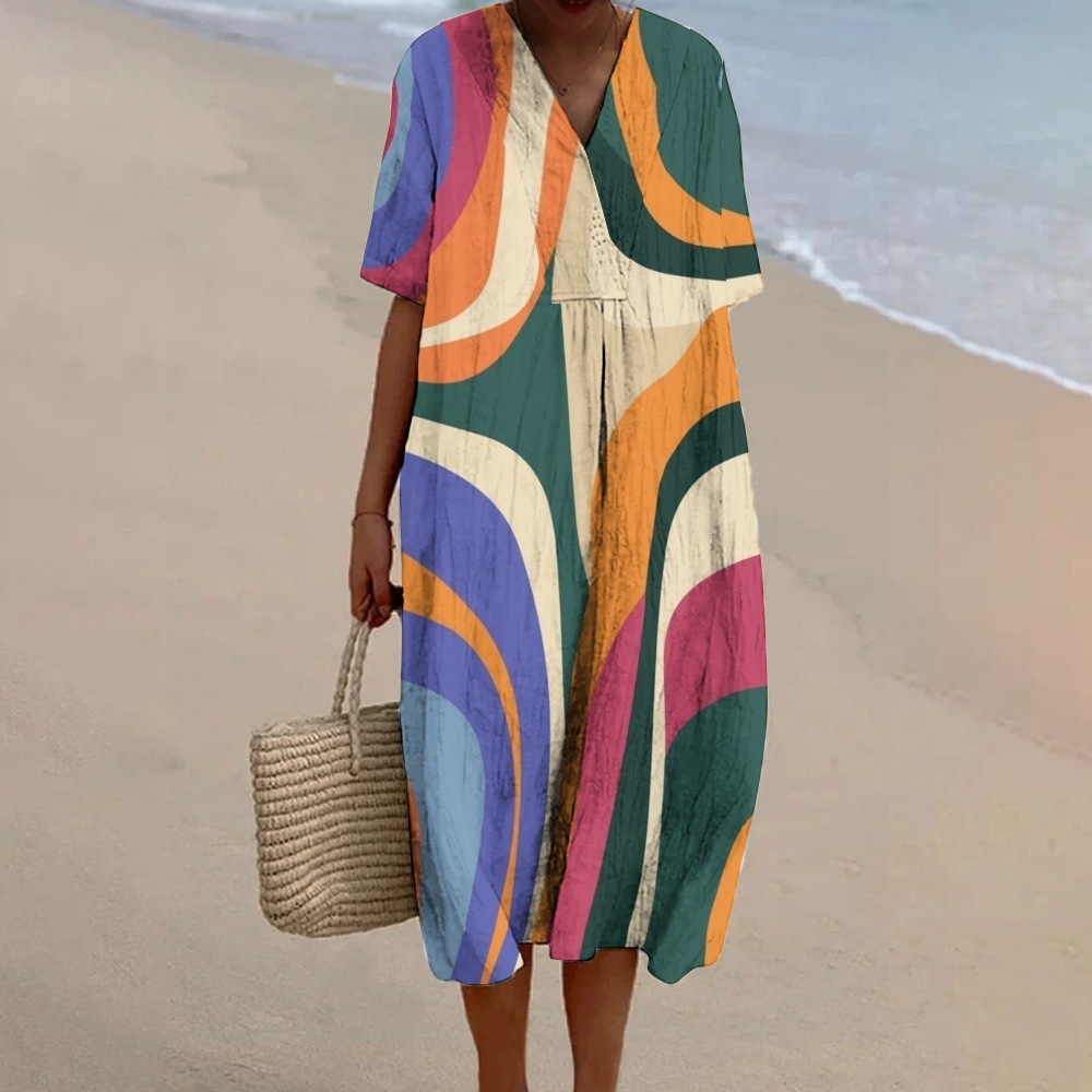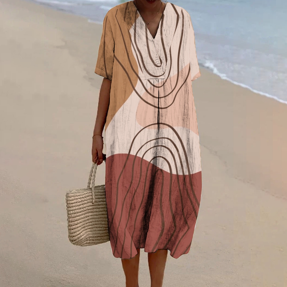 Women's Abstract Geometric Pattern Art Print Cotton Dress