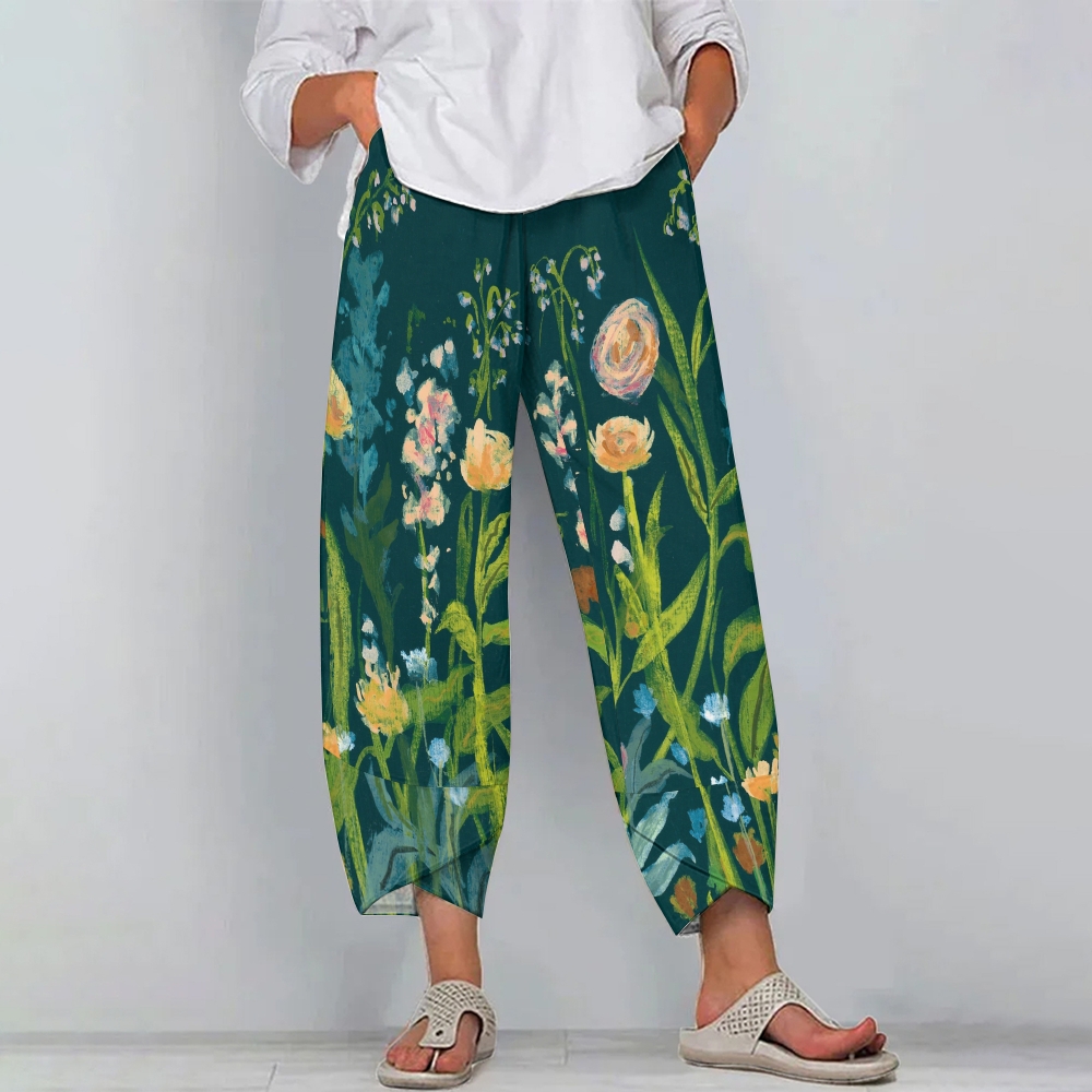 Women's Vintage Lovely Floral Art Printed Casual Pants
