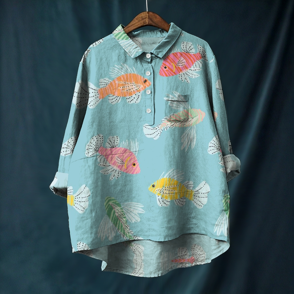 Women's Fish Printed Casual Long Sleeve Shirt