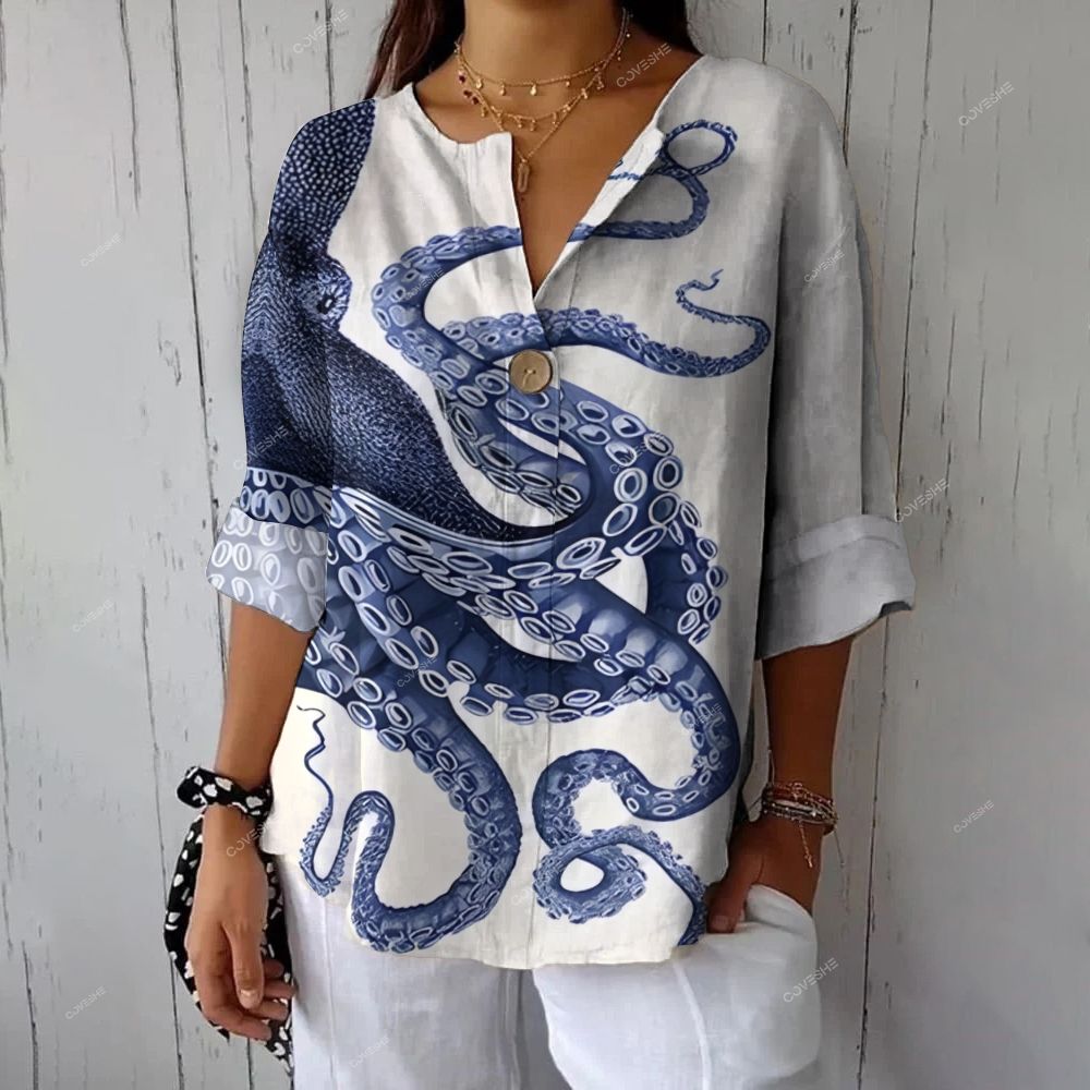 Women's Casual Octopus Printed Mid Sleeve Shirt