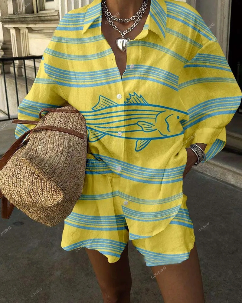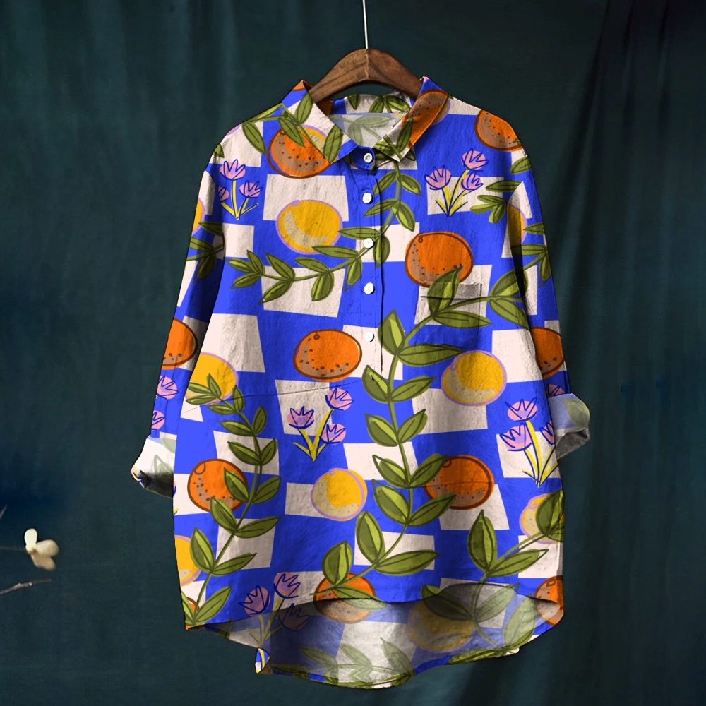 Women's Retro Flower Fish Printed Casual Long Sleeve Shirt