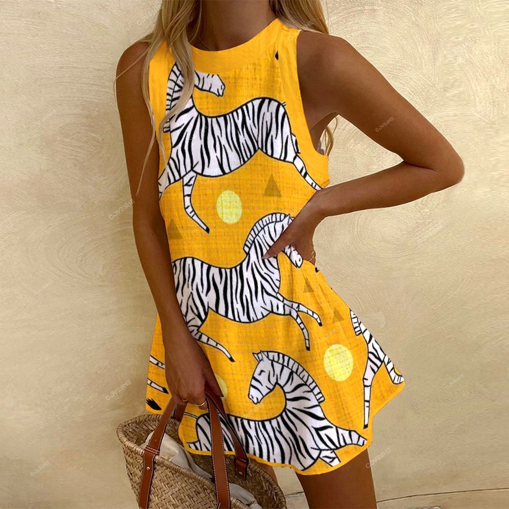 Women's Sleeveless Sea Waves Starfish Shells Printed Dress
