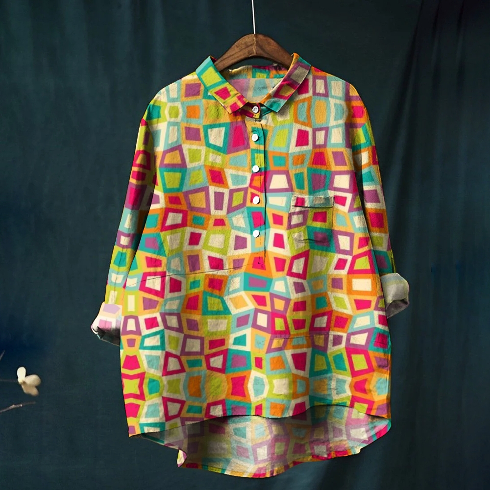 Women's Abstract Geometric Splicing Printed Casual Shirt
