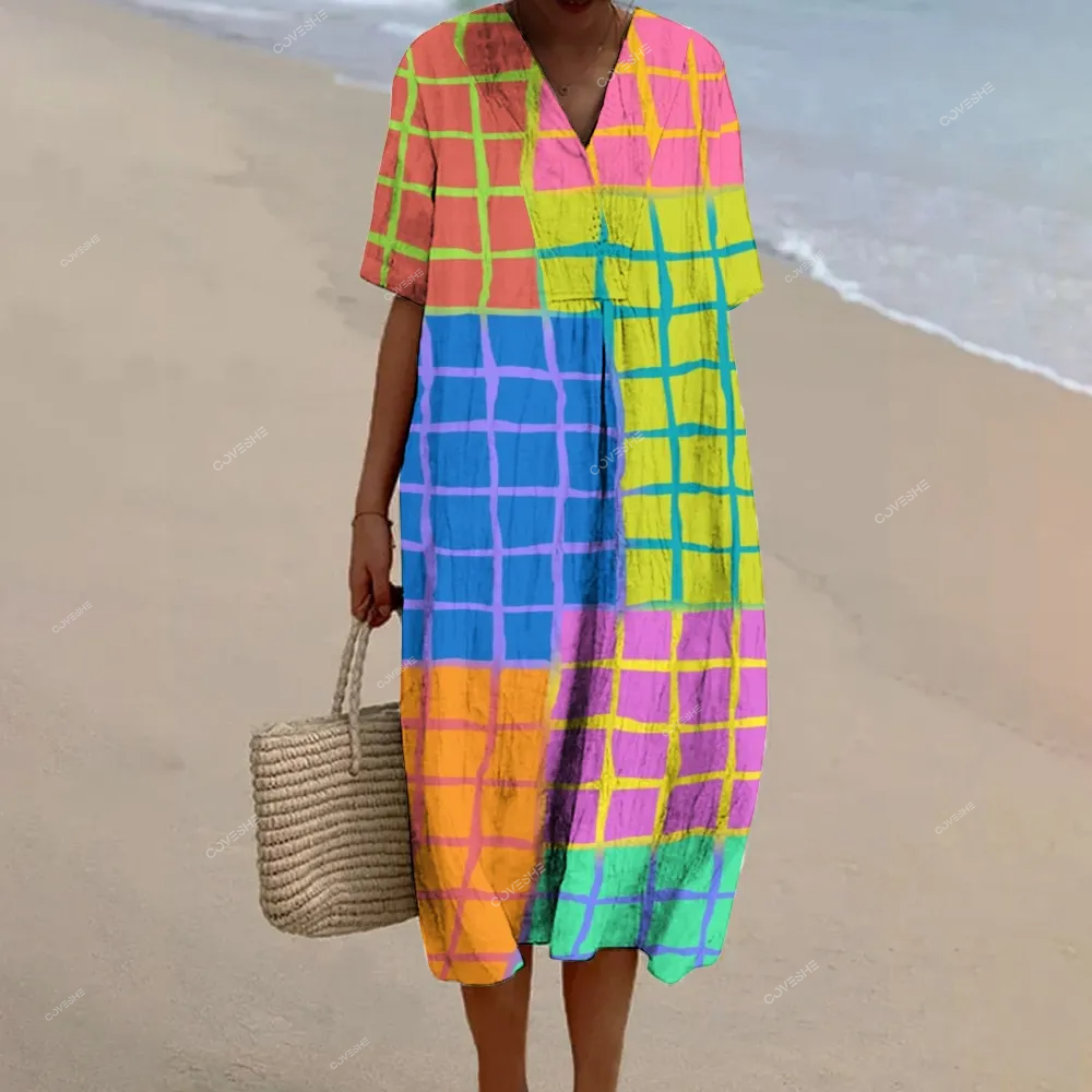 Women's Colored Cartoon Fish Printed Flowy Dress