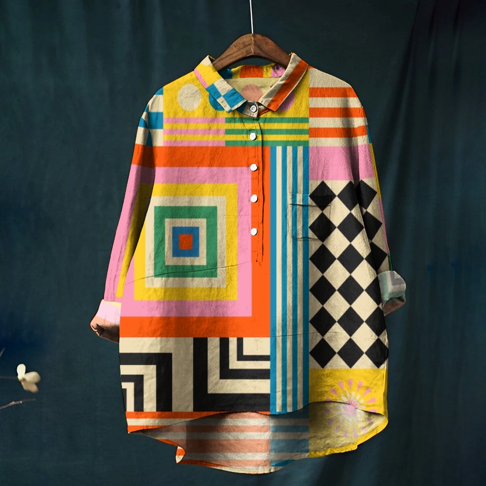 Women's Geometric Splicing Printed Casual Shirt