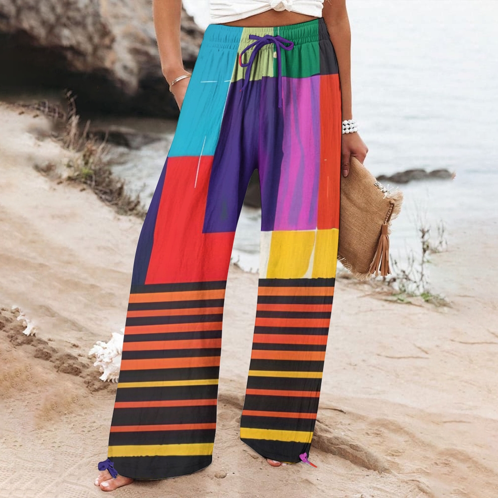 Women's Wide Leg Casual Geometric Stripes Printed Pants