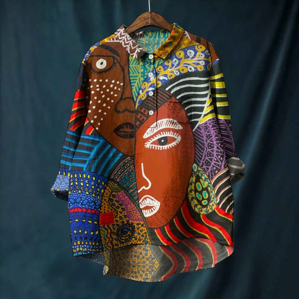Women's Artistic Geometric Portrait Printed Casual Long Sleeve Shirt