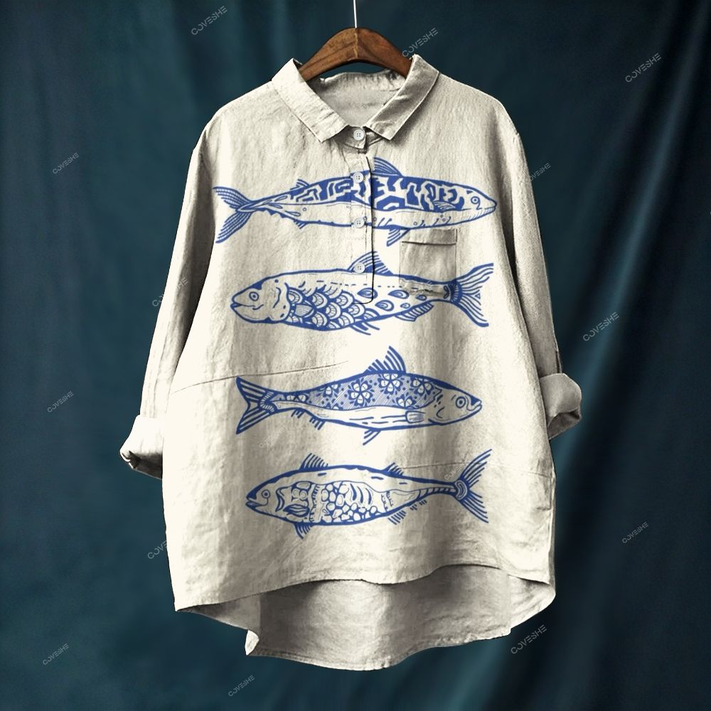 Women's Vintage Fish Printed Casual Long Sleeve Shirt