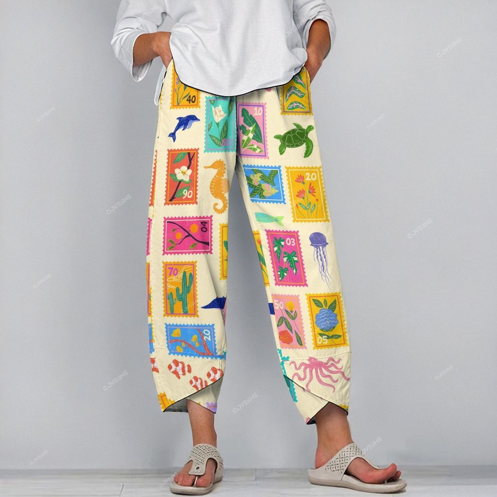 Women's Casual Artistic Colorful Chicken Printed Pants