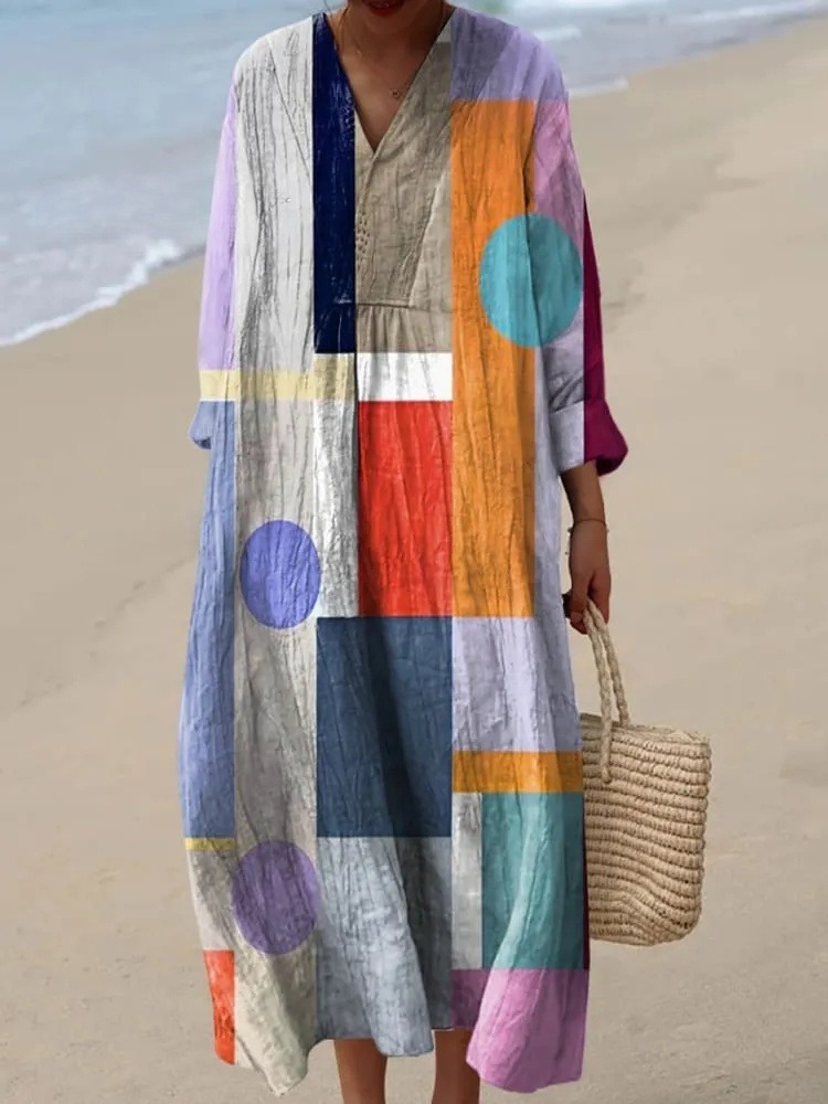 Women's Abstract Geometric Pattern Art Print Cotton Dress
