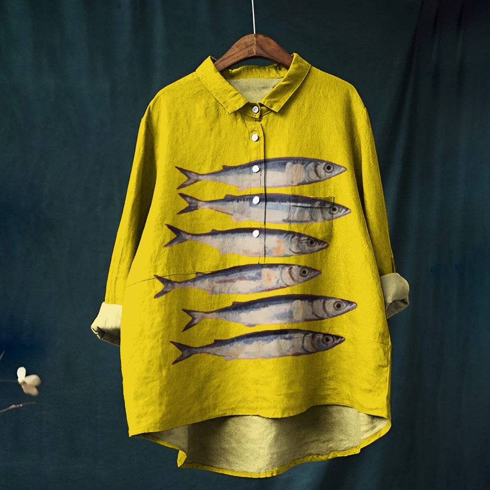 Women's Sardines Printed Casual Long Sleeve Shirt