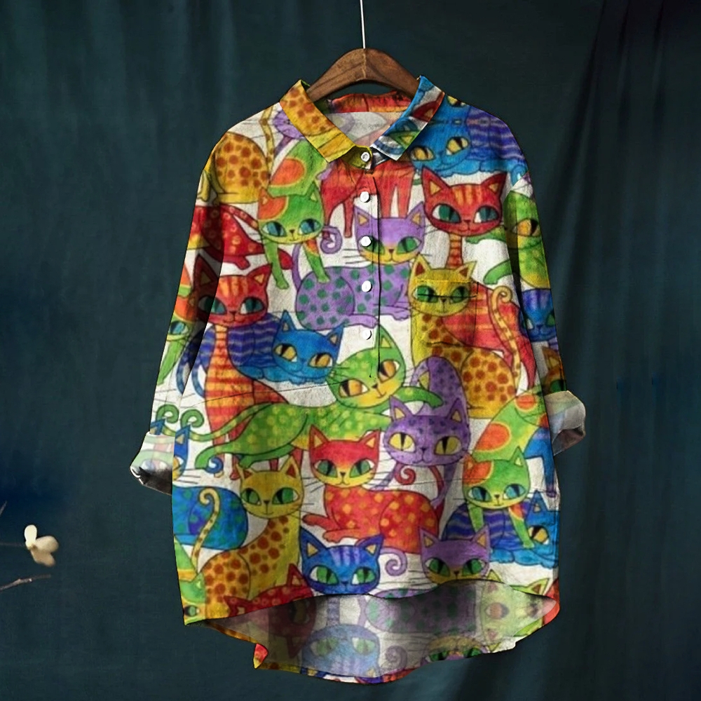 Women's Funny Cat Art Printed Casual Shirt